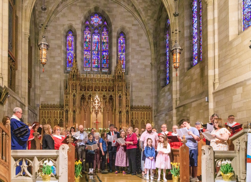Trinity's Grand Easter Service will begin at 10:30 a.m. on April 5, in the sanctuary. This traditional service will include special music provided by the Choristers,Choristers, (our children's choir), and the Chancel Choir with brass and Timpani. Rob will conclude his Lenten Children's Messages "Looking Up" during which he will lead the children in thinking of one last thing they can see in the sky to remind them of God and God's love for us. The traditional Easter message will be delivered by Rev. Dr. David Calhoun. At the conclusion of the service, the congregation will be invited to join the Choir in the chancel for the singing of the Hallelujah Chorus.
